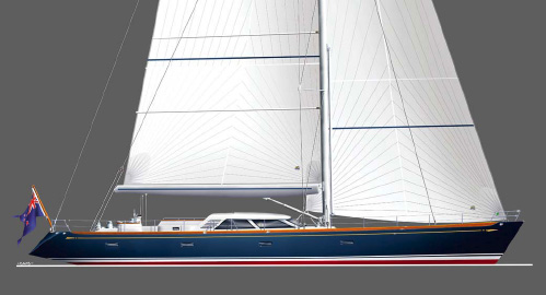 Yachting Developments Limited, Auckland, New Zealand, builder of the 2002 International Superyacht Design Award, winner, Silvertip, constructed the yacht in advanced composites. Her teak interior will feature an owner's stateroom aft with two ensuites, two identical guest staterooms, a spacious deckhouse and intimate lower saloon. Southern Spars supplied the carbon fibre mast, and Southern Furl boom, Doyle Sails New Zealand Ltd. is the sailmaker and Electronic Navigation Ltd. of Auckland provided the electronics.